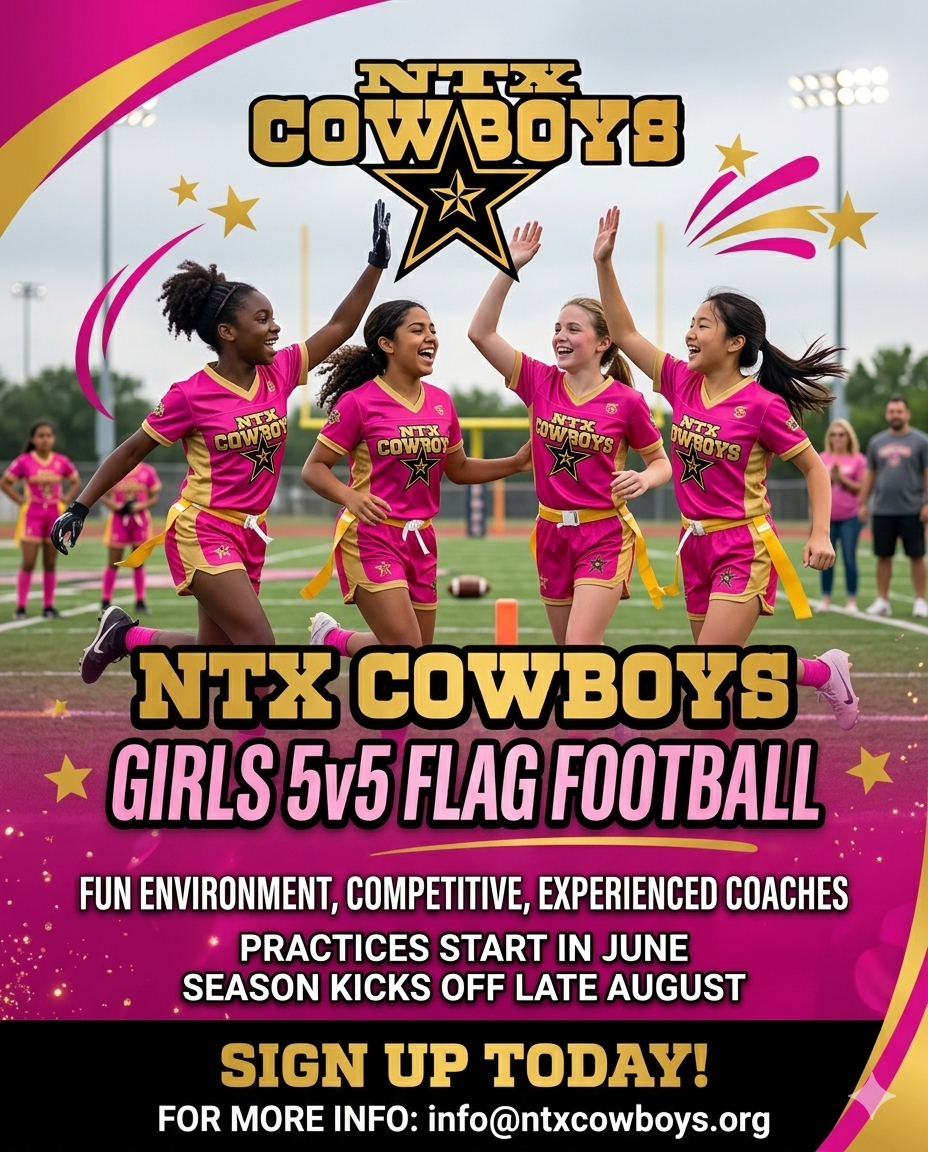 *Girls flag football (ages 6-13) is $250 and includes a custom uniform, head gear, bag, a tournament, player insurance and league registration.