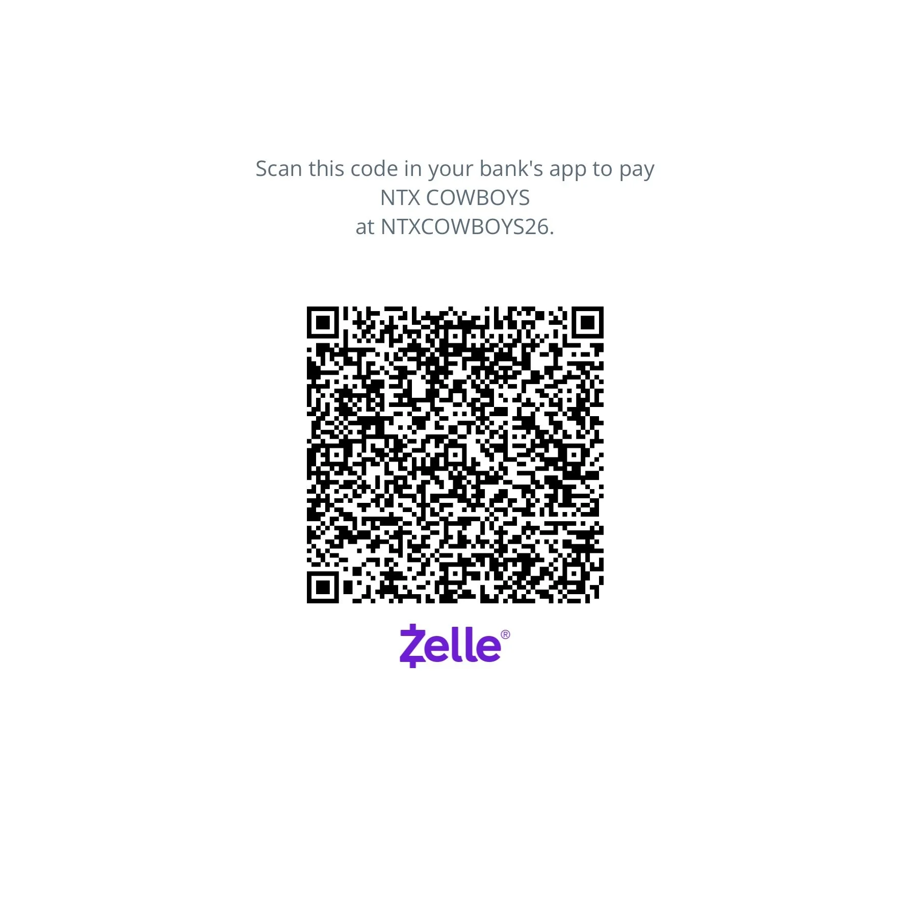 ***All fees are due upon registration. Please pay the registration fees via Zelle to NTXCOWBOYS26 or by scanning the QR code below . Registration fees do not include tournament fees. NO REFUNDS will be provided for registration fees.